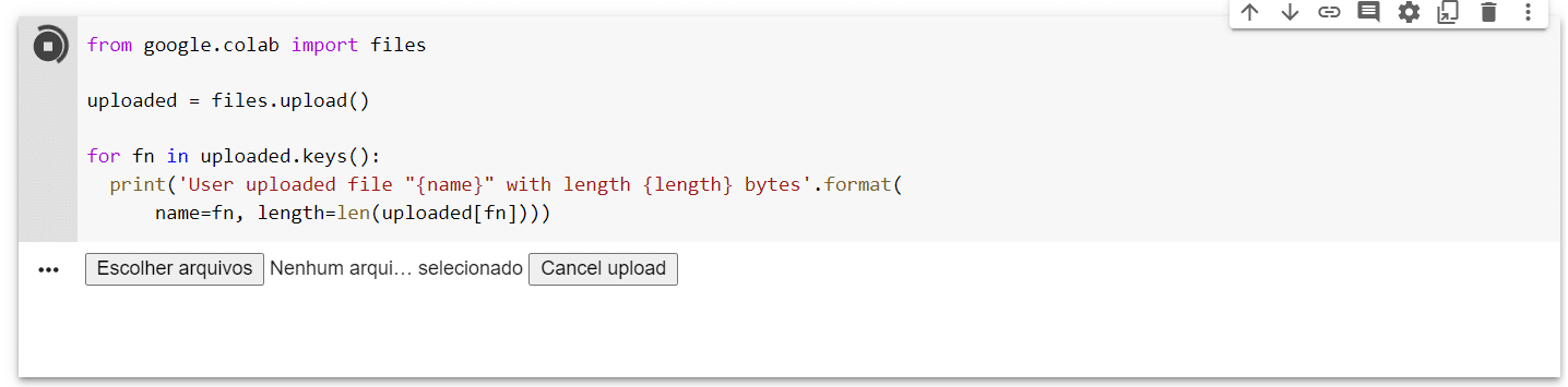 Inicialmente, o código abaixo disponibiliza uma interface que permite a você fazer upload do arquivo baixado acima.