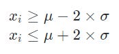 Em outras palavras, se a amostra xi estiver entre o intervalo da média subtraído pelo desvio padrão multiplicado por dois e a média somada com o desvio padrão multiplicado por dois, então pode ser considerada usual.