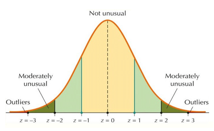 Em uma distribuição normal, espera-se que as amostras estejam próximas da média. À medida que se afasta da média, o ponto corre um sério risco de ser considerado outlier.